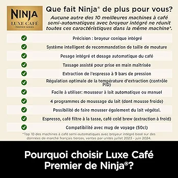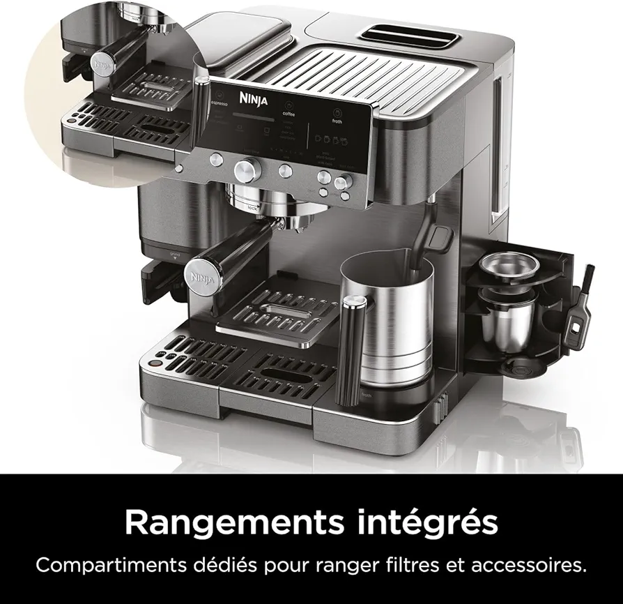 MACHINE À CAFÉ FACILE À UTILISER : exercez vos talents de barista avec 25 réglages de mouture, la balance et le mousseur à lait intégrés. Ou laissez-vous guider par la machine, son panneau de commande intuitif, ses recommandations et préréglages